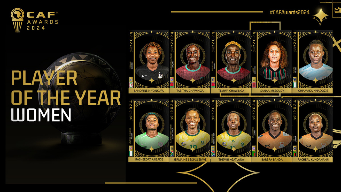 The coveted Women’s Player of the Year category features a dazzling array of talent. Nigeria’s Chiamaka Nnadozie (Paris FC) and Rasheedat Ajibade (Atletico Madrid) are among the 10 finalists, alongside Malawi's dynamic duo of Tabitha Chawinga (Olympique Lyonnais) and Temwa Chawinga (Kansas City). South Africa’s Thembi Kgatlana (Tigres UANL) and Zambia’s sensational Barbara Banda (Orlando Pride) join the list, promising fierce competition.
